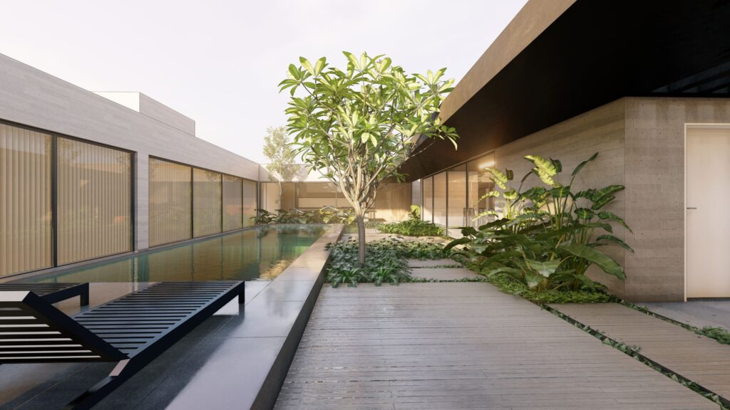 Nas entranhas da cidade, onde o concreto cinza abraça o verde dos parques e jardins, ergue-se majestosa a Casa Asadelta. Com seu telhado em forma de asas, a casa se assemelha a um asadelta prestes a alçar voo rumo aos horizontes desconhecidos. Suas asas abertas parecem acariciar os céus, enquanto acolhem a luz do sol em seu pátio central. No coração da morada, um jardim central pulsa com vida, como um órgão vital em harmonia com o corpo da cidade. É ali que a natureza e a urbanidade se encontram em uma dança íntima, simbolizando a convivência entre o ser humano e o ambiente que o circunda.